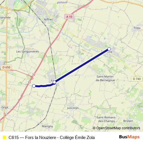 Bus C615 - Fors la Nouziere - Collège Émile Zola: Full Schedule in Fors