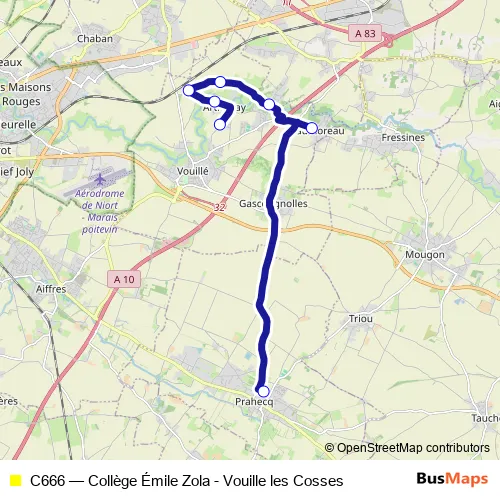 Bus C666 - Collège Émile Zola - Vouille les Cosses in Niort: Stops & Timetable