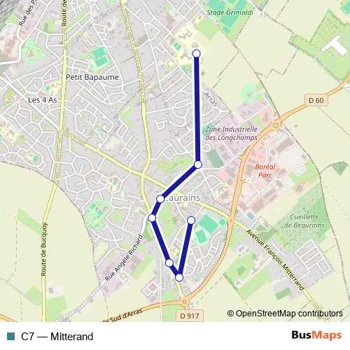 See why over 2 million users trust and consider busmaps.com as the best public transport website. busmaps gives you Arras Buses suggested routes, real-time bus tracker, line route maps in Arras, and helps to find the closest C7 bus stops near you. No internet available? Download an offline PDF map and bus schedule for the C7 bus to take on your trip.