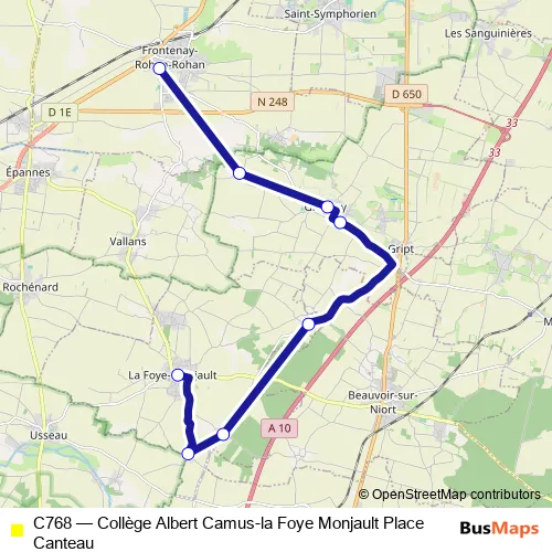 See why over 2 million users trust and consider busmaps.com as the best public transport website. busmaps gives you Niort Buses suggested routes, real-time bus tracker, line route maps in Niort, and helps to find the closest C768 bus stops near you. No internet available? Download an offline PDF map and bus schedule for the C768 bus to take on your trip.