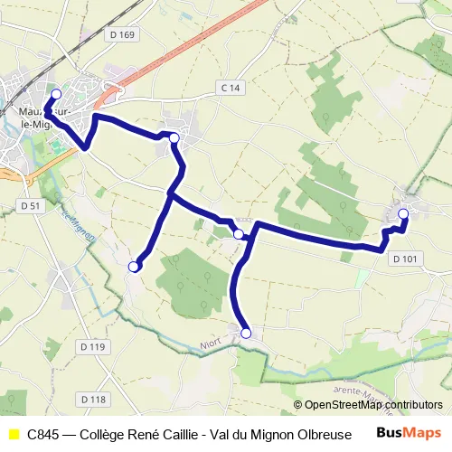 Bus C845 - Collège René Caillie - Val du Mignon Olbreuse in Mauze-sur-le-Mignon: Stops & Timetable