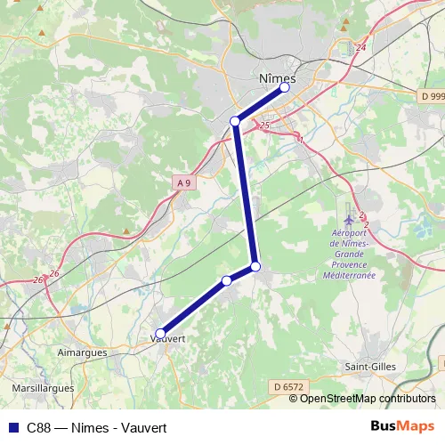 Click here to view the nearest C88 - Nimes - Vauvert rail stop.