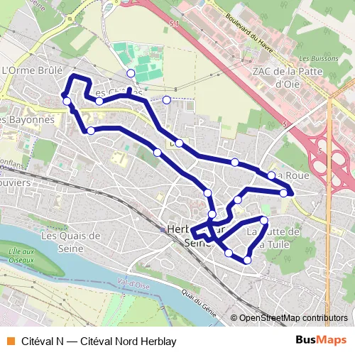 See why over 2 million users trust and consider busmaps.com as the best public transport website. busmaps gives you Herblay-sur-Seine Buses suggested routes, real-time bus tracker, line route maps in Herblay-sur-Seine, and helps to find the closest Citéval N bus stops near you. No internet available? Download an offline PDF map and bus schedule for the Citéval N bus to take on your trip.
