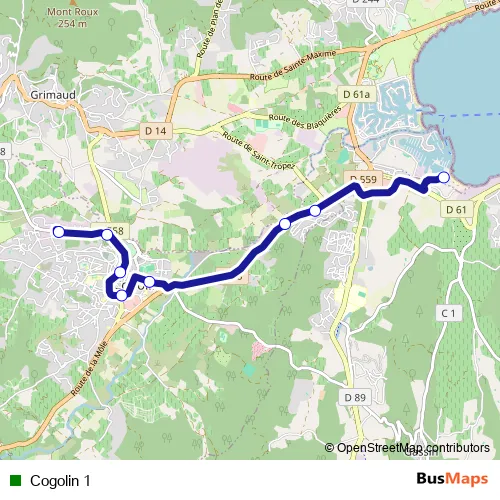 See why over 2 million users trust and consider busmaps.com as the best public transport website. busmaps gives you Cogolin Buses suggested routes, real-time bus tracker, line route maps in Cogolin, and helps to find the closest Cogolin 1 bus stops near you. No internet available? Download an offline PDF map and bus schedule for the Cogolin 1 bus to take on your trip.