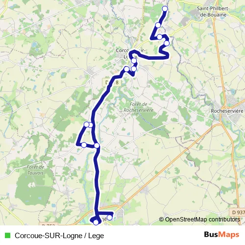 Additional information: Corcoue-SUR-Logne / Lege has 13 stops and the total trip duration for this route is approximately 50 minutes.