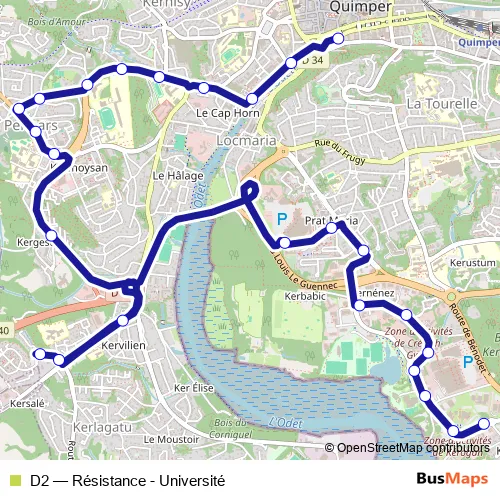 See why over 2 million users trust and consider busmaps.com as the best public transport website. busmaps gives you Quimper Buses suggested routes, real-time bus tracker, line route maps in Quimper, and helps to find the closest D2 bus stops near you. No internet available? Download an offline PDF map and bus schedule for the D2 bus to take on your trip.