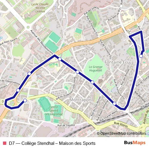 Click here to view the nearest D7 - Collège Stendhal – Maison des Sports bus stop.