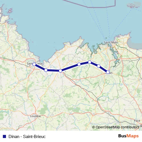 The first stop of the Dinan - Saint-Brieuc rail route is Gare de Dinan and the last stop is Gare de Saint-Brieuc. Dinan - Saint-Brieuc (Dinan - Saint-Brieuc) is operational during tous les jours.