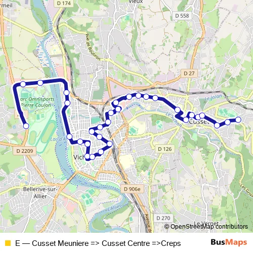 See why over 2 million users trust and consider busmaps.com as the best public transport website. busmaps gives you Vichy Buses suggested routes, real-time bus tracker, line route maps in Vichy, and helps to find the closest E bus stops near you. No internet available? Download an offline PDF map and bus schedule for the E bus to take on your trip.