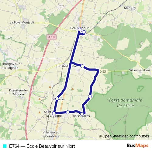 Click here to view the nearest E764 - École Beauvoir sur Niort bus stop.