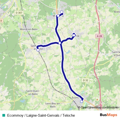 Ecommoy / Laigne-Saint-Gervais / Teloche bus Route Map