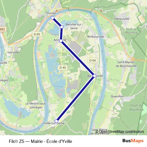 The first stop of the Filo'r Z5 bus route is Bac de Berville and the last stop is Mairie - École d'Yville. Filo'r Z5 (Mairie - École d'Yville) is operational during en semaine.