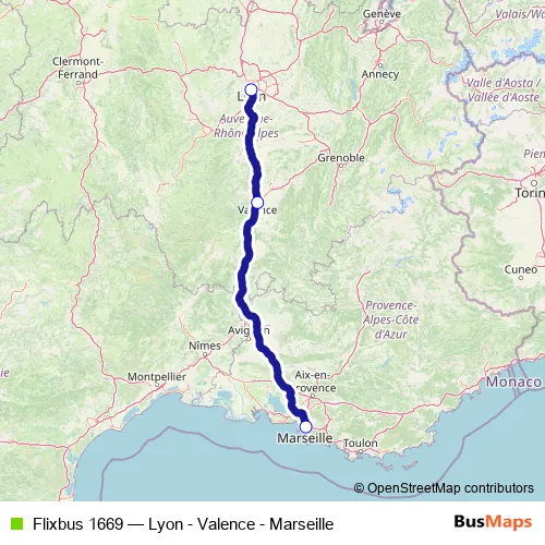 Click here to view the nearest Flixbus 1669 - Lyon - Valence - Marseille bus stop.