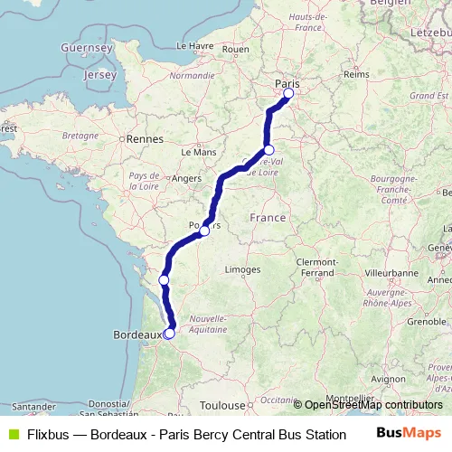 See why over 2 million users trust and consider busmaps.com as the best public transport website. busmaps gives you Bordeaux Buses suggested routes, real-time bus tracker, line route maps in Bordeaux, and helps to find the closest Flixbus bus stops near you. No internet available? Download an offline PDF map and bus schedule for the Flixbus bus to take on your trip.