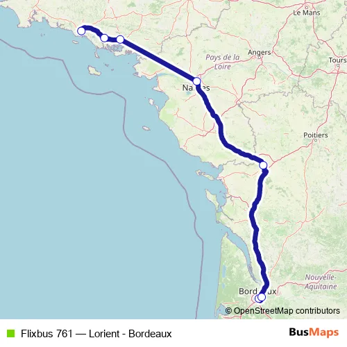 Click here to view the nearest Flixbus 761 - Lorient - Bordeaux bus stop.