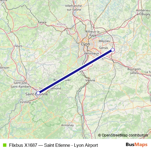 Click here to view the nearest Flixbus X1687 - Saint Etienne - Lyon Airport bus stop.