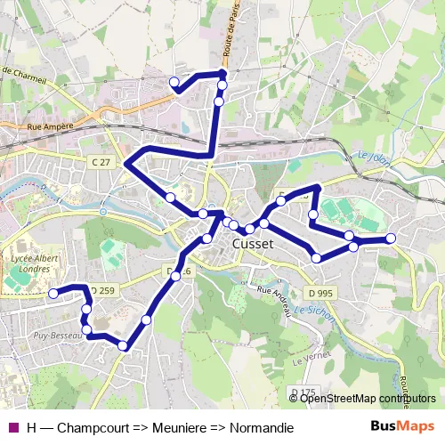 Cusset Champcourt. H (Champcourt => Meuniere => Normandie) is operational during tous les jours.
