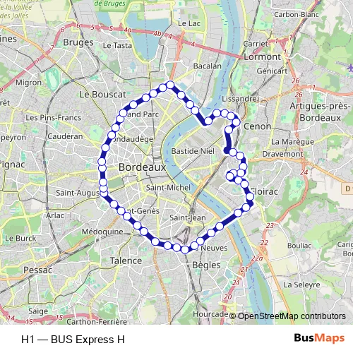 Bus H1 - BUS Express H in Bordeaux: Stops & Timetable