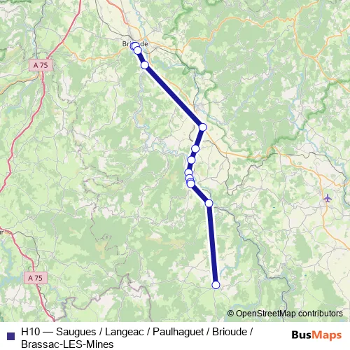 Click here to view the nearest H10 - Saugues / Langeac / Paulhaguet / Brioude / Brassac-LES-Mines bus stop.