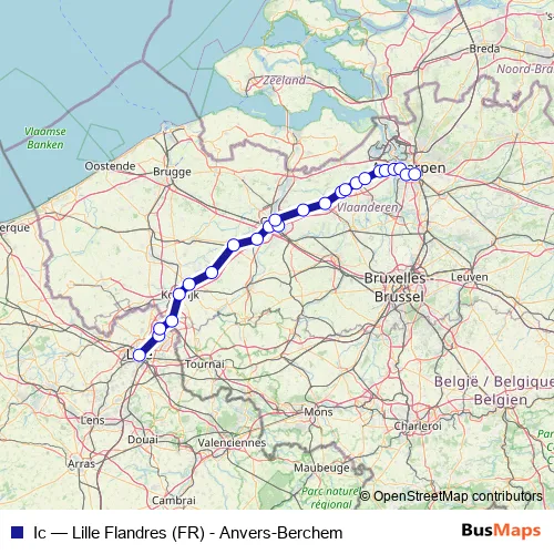 Anvers-Berchem. Ic (Lille Flandres (FR) - Anvers-Berchem) is operational during en semaine.