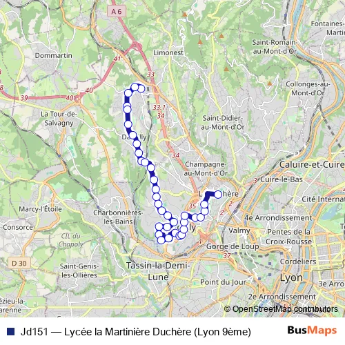 See why over 2 million users trust and consider busmaps.com as the best public transport website. busmaps gives you Lyon Buses suggested routes, real-time bus tracker, line route maps in Lyon, and helps to find the closest Jd151 bus stops near you. No internet available? Download an offline PDF map and bus schedule for the Jd151 bus to take on your trip.