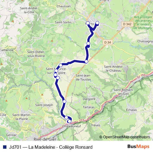 The first stop of the Jd701 bus route is Chabanière La Madeleine and the last stop is Mornant Collège Ronsard. Jd701 (La Madeleine - Collège Ronsard) is operational during en semaine.