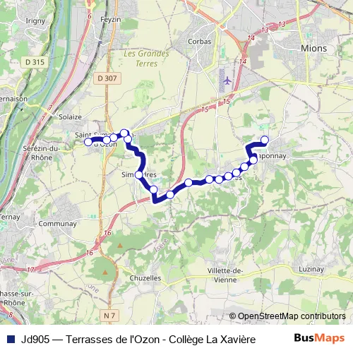 Bus Jd905 - Terrasses de l'Ozon - Collège La Xavière: Full Schedule in Lyon