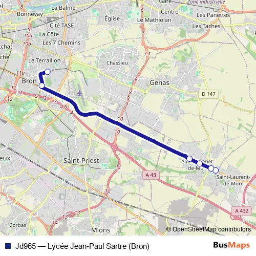 Click here to view the nearest Jd965 - Lycée Jean-Paul Sartre (Bron) bus stop.