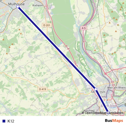Bus K12 in Basel: Stops & Timetable