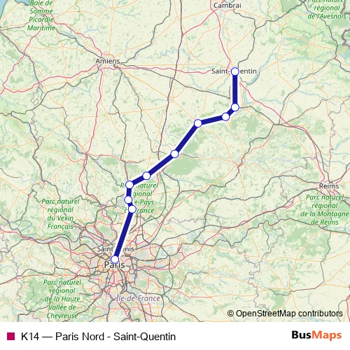 Click here to view the nearest K14 - Paris Nord - Saint-Quentin rail stop.