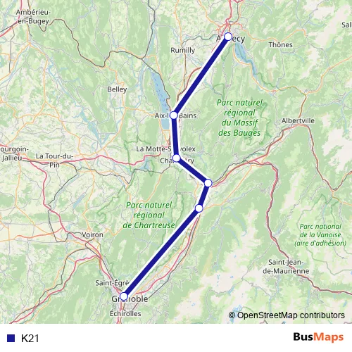 See why over 2 million users trust and consider busmaps.com as the best public transport website. busmaps gives you Chambery Buses suggested routes, real-time bus tracker, line route maps in Chambery, and helps to find the closest K21 bus stops near you. No internet available? Download an offline PDF map and bus schedule for the K21 bus to take on your trip.