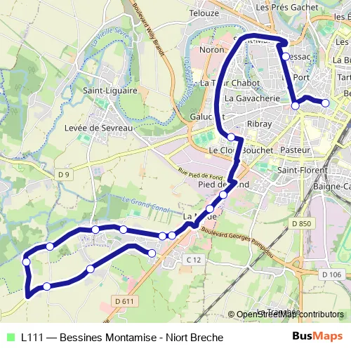 See why over 2 million users trust and consider busmaps.com as the best public transport website. busmaps gives you Niort Buses suggested routes, real-time bus tracker, line route maps in Niort, and helps to find the closest L111 bus stops near you. No internet available? Download an offline PDF map and bus schedule for the L111 bus to take on your trip.