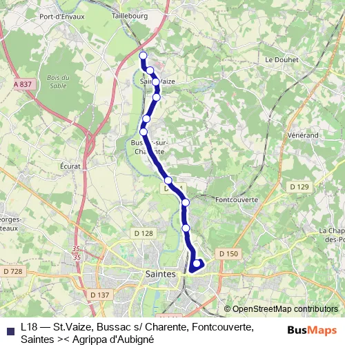L18 Bus - St.Vaize, Bussac s/ Charente, Fontcouverte, Saintes >< Agrippa d'Aubigné