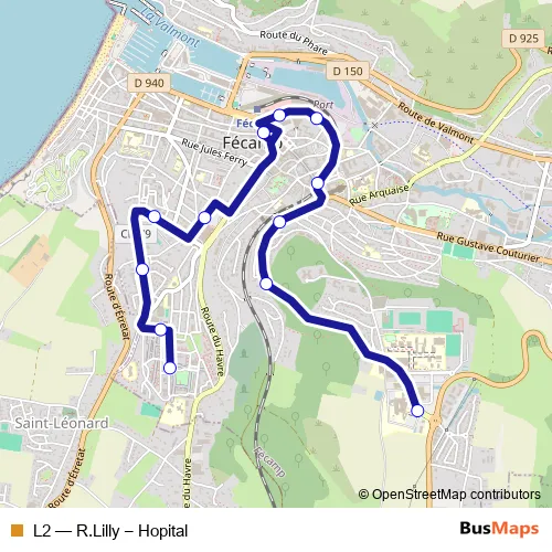 See why over 2 million users trust and consider busmaps.com as the best public transport website. busmaps gives you Fecamp Buses suggested routes, real-time bus tracker, line route maps in Fecamp, and helps to find the closest L2 bus stops near you. No internet available? Download an offline PDF map and bus schedule for the L2 bus to take on your trip.