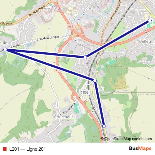 See why over 2 million users trust and consider busmaps.com as the best public transport website. busmaps gives you Soissons Buses suggested routes, real-time bus tracker, line route maps in Soissons, and helps to find the closest L201 bus stops near you. No internet available? Download an offline PDF map and bus schedule for the L201 bus to take on your trip.