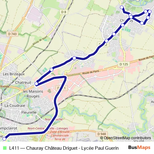 Click here to view the nearest L411 - Chauray Château Driguet - Lycée Paul Guerin bus stop.