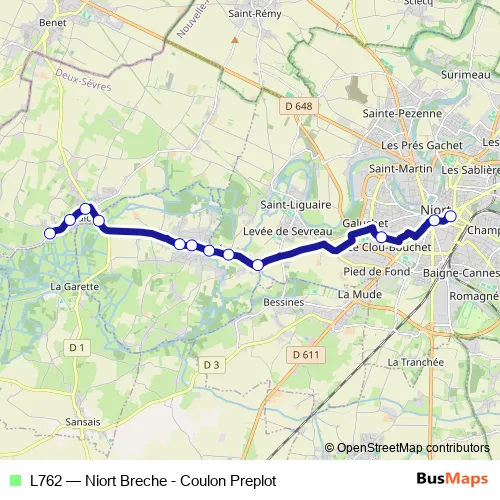 Click here to view the nearest L762 - Niort Breche - Coulon Preplot bus stop.