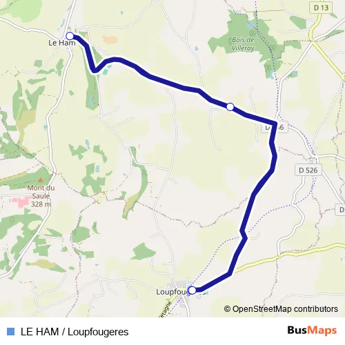 The first stop of the LE HAM / Loupfougeres bus route is École Pub. and the last stop is École Pub. 1. LE HAM / Loupfougeres (LE HAM / Loupfougeres) is operational during tous les jours.