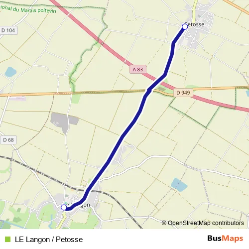 The first stop of the LE Langon / Petosse bus route is École Publique and the last stop is École Publique. LE Langon / Petosse (LE Langon / Petosse) is operational during tous les jours.