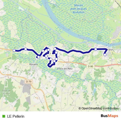 The first stop of the LE Pellerin bus route is Col P.& M.Curie Pel and the last stop is Route de Paimboeuf. LE Pellerin is operational during en semaine.