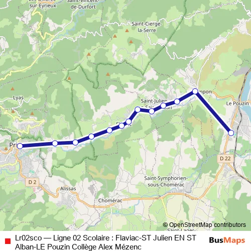 Lr02sco Bus - Ligne 02 Scolaire : Flaviac-ST Julien EN ST Alban-LE Pouzin Collège Alex Mézenc
