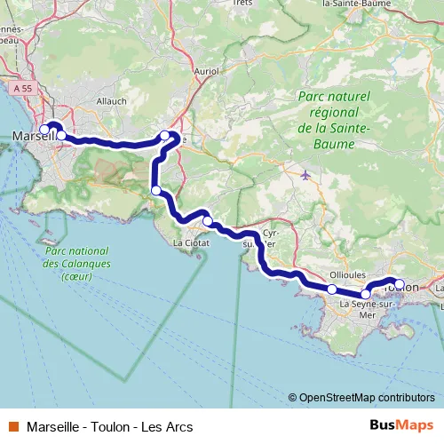 See why over 2 million users trust and consider busmaps.com as the best public transport website. busmaps gives you Marseille Rail Services suggested routes, real-time bus tracker, line route maps in Marseille, and helps to find the closest Marseille - Toulon - Les Arcs rail stops near you. No internet available? Download an offline PDF map and bus schedule for the Marseille - Toulon - Les Arcs rail to take on your trip.