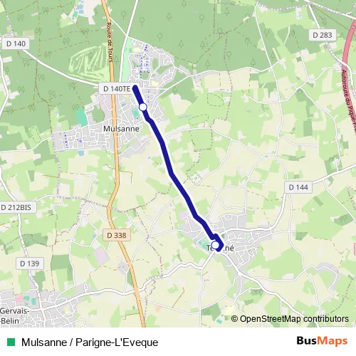 Mulsanne / Parigne-L'Eveque bus Route Map