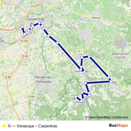 Bus N - Venasque – Carpentras: Full Schedule in Carpentras