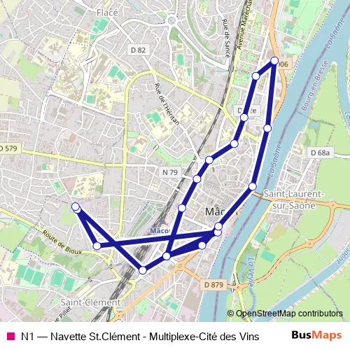 Bus N1 - Navette St.Clément - Multiplexe-Cité des Vins in Macon: Stops & Timetable