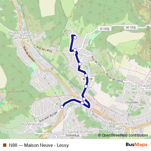 Click here to view the nearest N88 - Maison Neuve - Lessy bus stop.