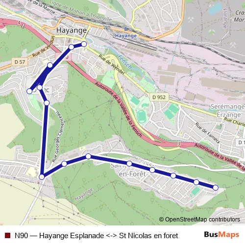 Bus N90 - Hayange Esplanade <-> St Nicolas en foret: Full Schedule in Hayange