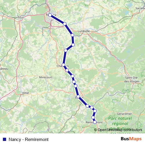 Additional information: Nancy - Remiremont has 16 stops and the total trip duration for this route is approximately 93 minutes.