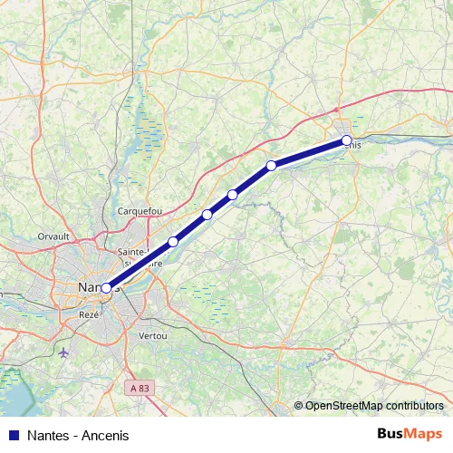 See why over 2 million users trust and consider busmaps.com as the best public transport website. busmaps gives you Nantes Rail Services suggested routes, real-time bus tracker, line route maps in Nantes, and helps to find the closest Nantes - Ancenis rail stops near you. No internet available? Download an offline PDF map and bus schedule for the Nantes - Ancenis rail to take on your trip.