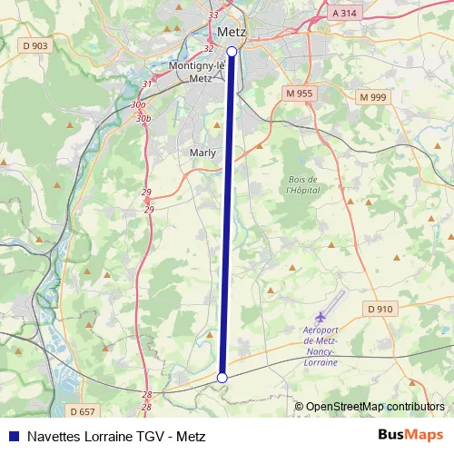 Additional information: Navettes Lorraine TGV - Metz has 2 stops and the total trip duration for this route is approximately 30 minutes.